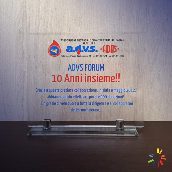 Festeggiamo 10 anni di collaborazione con Advs Fidas Palermo che ha superato le 6000 donazioni solo a Forum. Grazie! ❤️