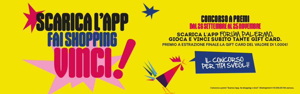 Presentati all’Info Point (lun-ven dalle 11 alle 20 o sab-dom dalle 10 alle 21) con gli scontrini e il coupon scaricato dall’App Forum Palermo per ricevere una cartolina.