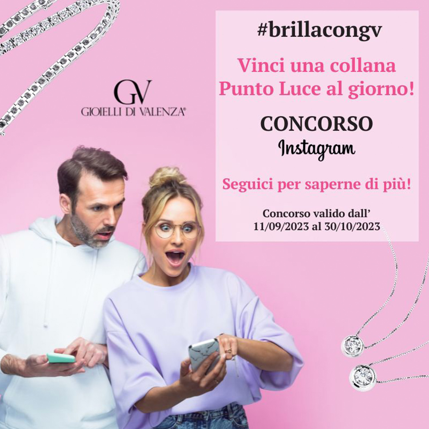 Vinci una collana Punto Luce con diamante al giorno e come estrazione finale un bracciale Tennis da 5.00 ct 💎
