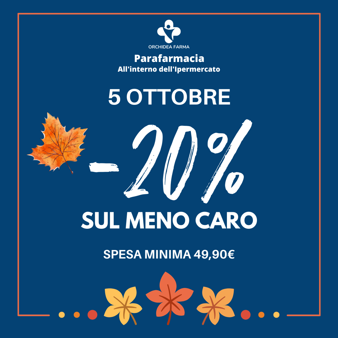 Parafarmacia Da Parafarmacia il 5 ottobre sconto del 20% sul secondo acquisto meno caro per una spesa minima di 49,90€. Non perdere l’occasione!