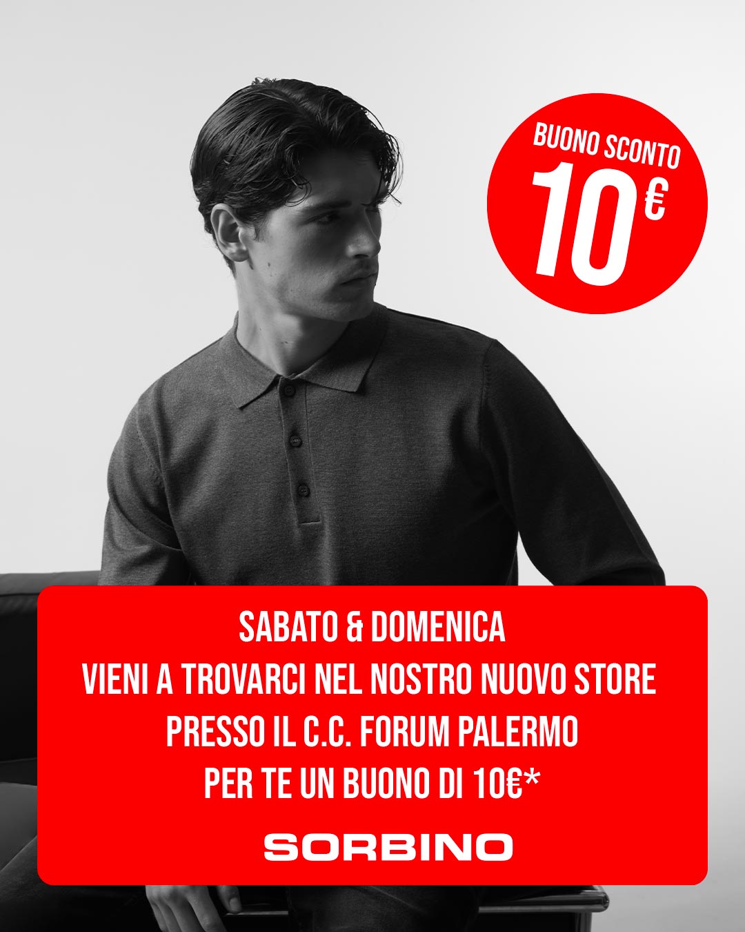 Sorbino Vieni a trovarci presso il nuovo store a Forum Palermo! Approfitta del buono di 10€ solo sabato 7 e domenica 8! Non perdere l’occasione!