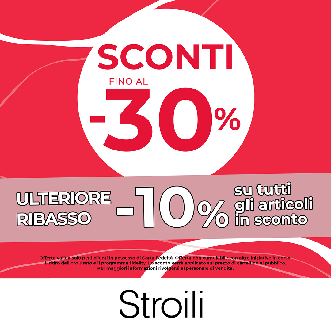 Stroili Da Stroili trovi il regalo perfetto per tutti e fino al 6 agosto approfitta dell’ulteriore ribasso del -10% su tutti gli articoli in sconto! Offerta valida in tutte le gioiellerie Stroili.